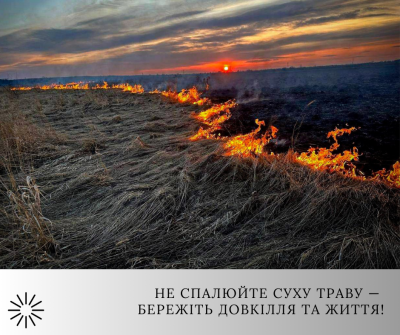 Не спалюйте суху траву — бережіть довкілля та життя.